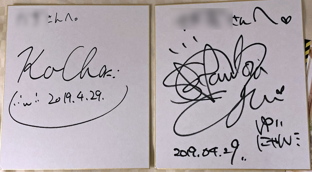 結果は色紙2種ともゲットできましたのでまずまずかと思います。翌日擬音王さんも抽選会参加されてましたので、そちらでも引かせて頂きましたがほぼ色紙...なんか色紙率高くないですか?wってぐらい色紙が引けてしまう幸運が(๑>◡<๑)