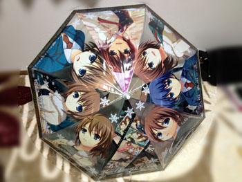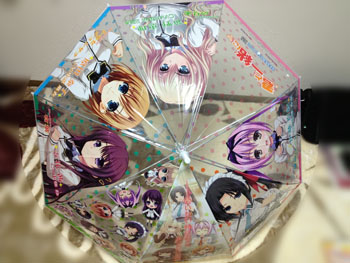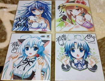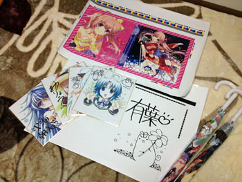 最初に痛傘欲しい人って感じで挙手した人たちに配布して、その後に直サイン入色紙配布&有葉さんの配布不可色紙の展示、じゃんけん大会、会社見学スタートって感じでした。会社見学では有葉さんのぼかし前原画(写真不可)等を見せてもらったり作業場を見せてもらったりと楽しい一日でした。有葉さんの原画をず~っと見てるだけでもよかったですが(マテ