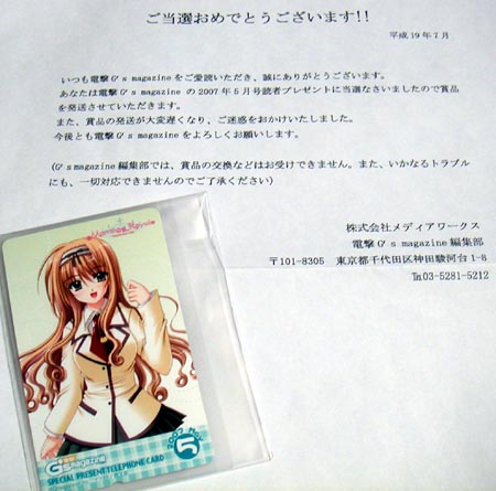今月号はテレカ誌上通販を行うとの事ですので早速(結構遅いけどねw)買ってきました~。流石に今月はきついのですが、絵柄がいいので結構申し込むだろうなとww