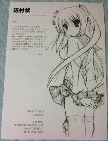 先日言ってた、Green Strawberry応援バナー当選色紙到着しました~♪