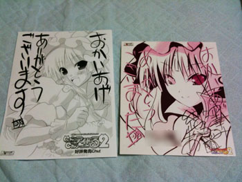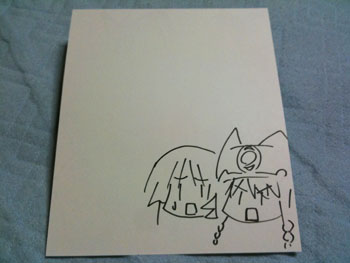 そろそろ時間だな~ってことでソフマップ日本橋2号館へ戻りましたが、イベント室内はかな~り暑いしなんか前?横?の方がちょっとだけくさい(マテ イベントはサインシート(色紙じゃないよっ)に宛名ありでサインを貰い、時間的に余裕があるからとのことで裏側に好きなイラストを書いてもらうってことでした。