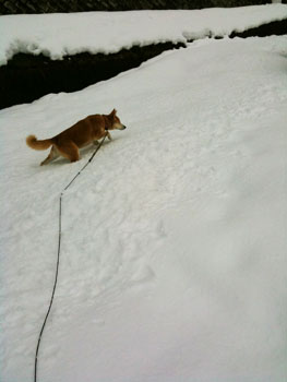 結構あるもんで、写真左が散歩中のわんこ側写真で右側がその最中に埋まっている私…これで膝丈なんだぜっw 足抜けないんだぜっw